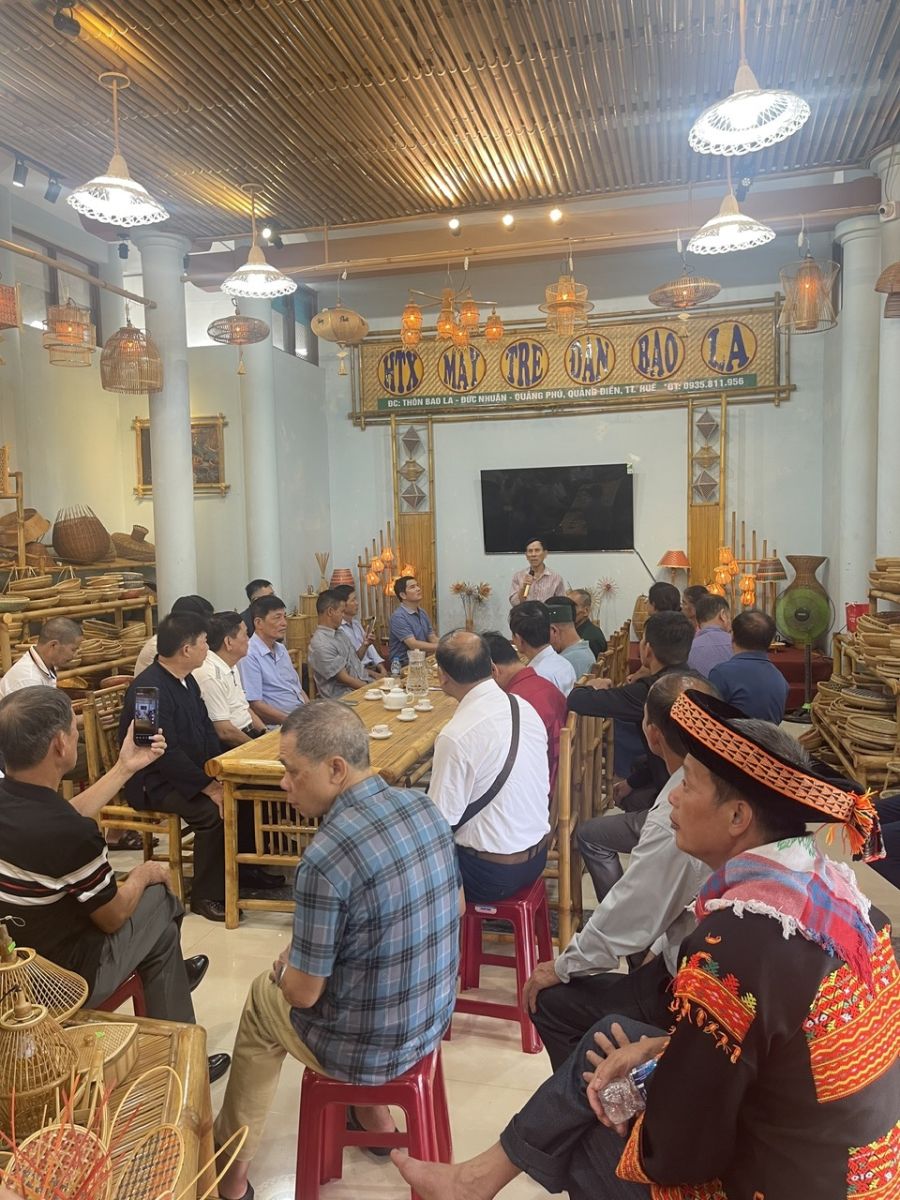 Đoàn đến thăm Hợp tác xã Mây tre Đan Bao La thuộc xã Đan Điền, thành phố Huế và được biết đến là một trong những mô hình Mây tre Đan thương phẩm quy mô lớn, hiệu quả cao trên địa bàn thành phố Huế.