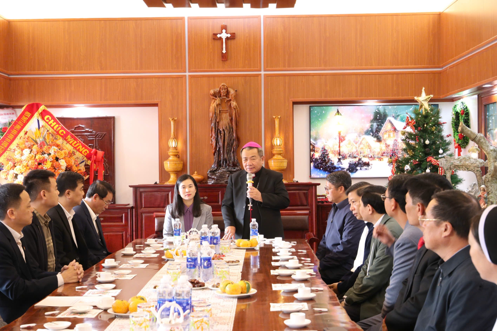 Thay mặt Đoàn công tác, đồng chí Trần Thanh Nhàn, Phó Chủ tịch Ủy ban nhân dân tỉnh đã chúc mừng chức sắc, chức việc Tòa Giám mục Giáo phận Lạng Sơn – Cao Bằng, Giáo xứ Cửa Nam và gửi lời chúc mừng đến đồng bào Công giáo đón Giáng sinh an lành, mạnh khỏe, hạnh phúc. Nhân dịp này, đồng chí Trưởng đoàn thông tin nhanh về tình hình phát triển kinh tế, văn hóa, xã hội của của tỉnh; ghi nhận và đánh giá cao những đóng góp của chức sắc, chức việc, tín đồ Công giáo đối với sự phát triển kinh tế - xã hội, xóa đói giảm nghèo, an sinh xã hội, xây dựng nông thôn mới, đô thị văn minh… Đồng chí Trưởng đoàn công tác trân trọng đề nghị các chức sắc, chức việc với vai trò của mình sẽ hướng dẫn tín đồ sinh hoạt động tôn giáo đảm bảo quy định pháp luật; tích cực tham gia các phong trào thi đua yêu nước, sống “tốt đời đẹp đạo”; tiếp tục tuyên truyền, vận động bà con giáo dân thực hiện tốt các chủ trương chính sách của Đảng, pháp luật của Nhà nước, cùng đoàn kết, chung tay xây góp phần đảm bảo an ninh quốc phòng, phát triển kinh tế xã hội trên địa bàn tỉnh.