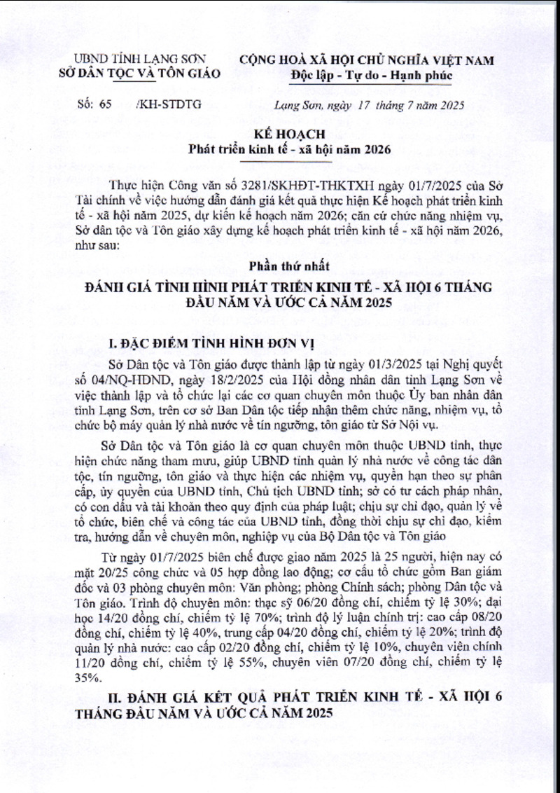 | Tiêu đề văn bản | Kế hoạch phát triển kinh tế- xã hội năm 2026 của Sở Dân tộc và Tôn giáo | ||