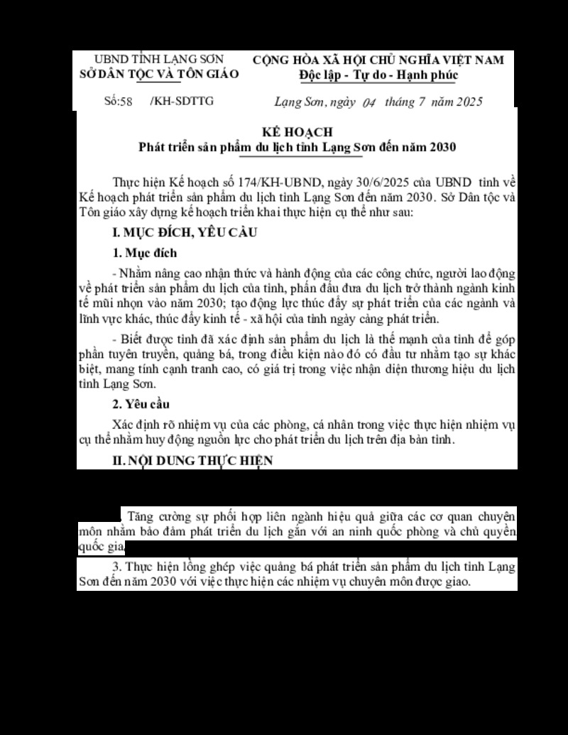 | Tiêu đề văn bản | Kế hoạch Phát triển sản phẩm du lịch tỉnh Lạng Sơn đến năm 2030 | ||